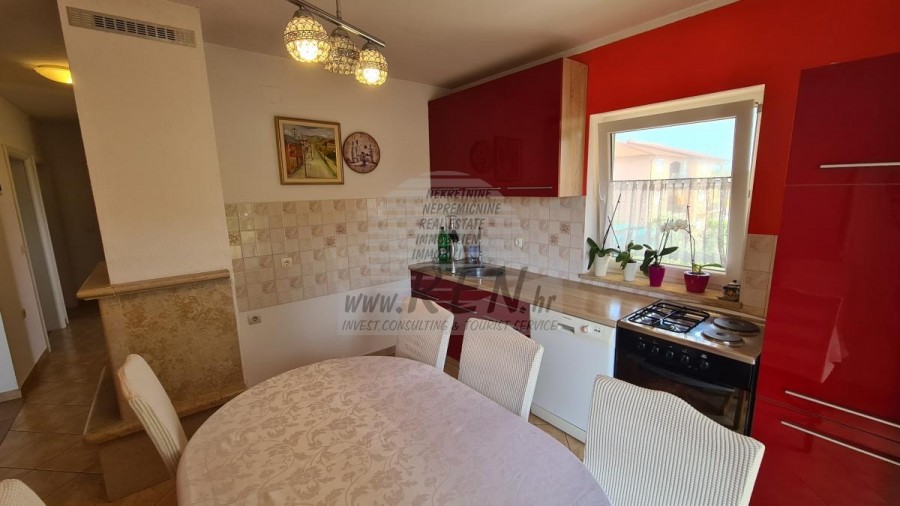 Die Wohnung in Novigrad hat insgesamt 108,05 m2, befindet sich im ersten Stock (gesamte Etage) eines Einfamilienhauses mit insgesamt 2 Wohnungen, ist 5 Min. entfernt. (2500 m) vom Meer und vom wunderschön angelegten Strand entfernt, 5 Min. (2500 m) vom Zentrum von Novigrad entfernt. Die Wohnung besteht aus einer Küche/Wohnzimmer/Esszimmer, 3 Schlafzimmern, Badezimmer, 2 Terrassen. Komplett ausgestattet, Klimaanlage, Kamin, 3 Parkplätze gehören zur Wohnung, Meerblick. Es besteht die Möglichkeit, eine zusätzliche Etage aufzuwerten.