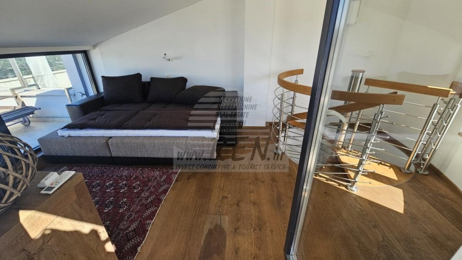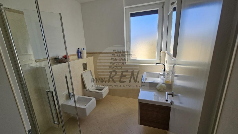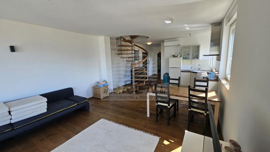 Die Wohnung besteht aus Küche, Wohn-/Esszimmer, 2 Schlafzimmern, Badezimmer und 2 Terrassen. Voll möbliert, Schornstein, Klimaanlagen, Aufzug, Abstellraum, eigener Parkplatz, wunderschöner Meerblick.Die Wohnung ist nur etwa 300 m vom Verkaufsladen, vom Restaurant 100 m, Marktplatz 400 m, Arzt 500 m, Apotheke 500 m, vom Flughafen in Pula 60 km und vom Flughafen in Portorož 30 km, von der Marine Novigrad 100 m, und von dem Aquapark (Istralandia) 7 km.